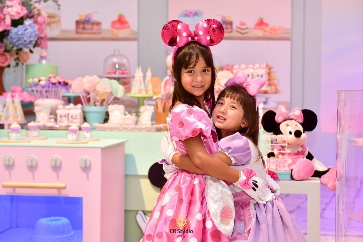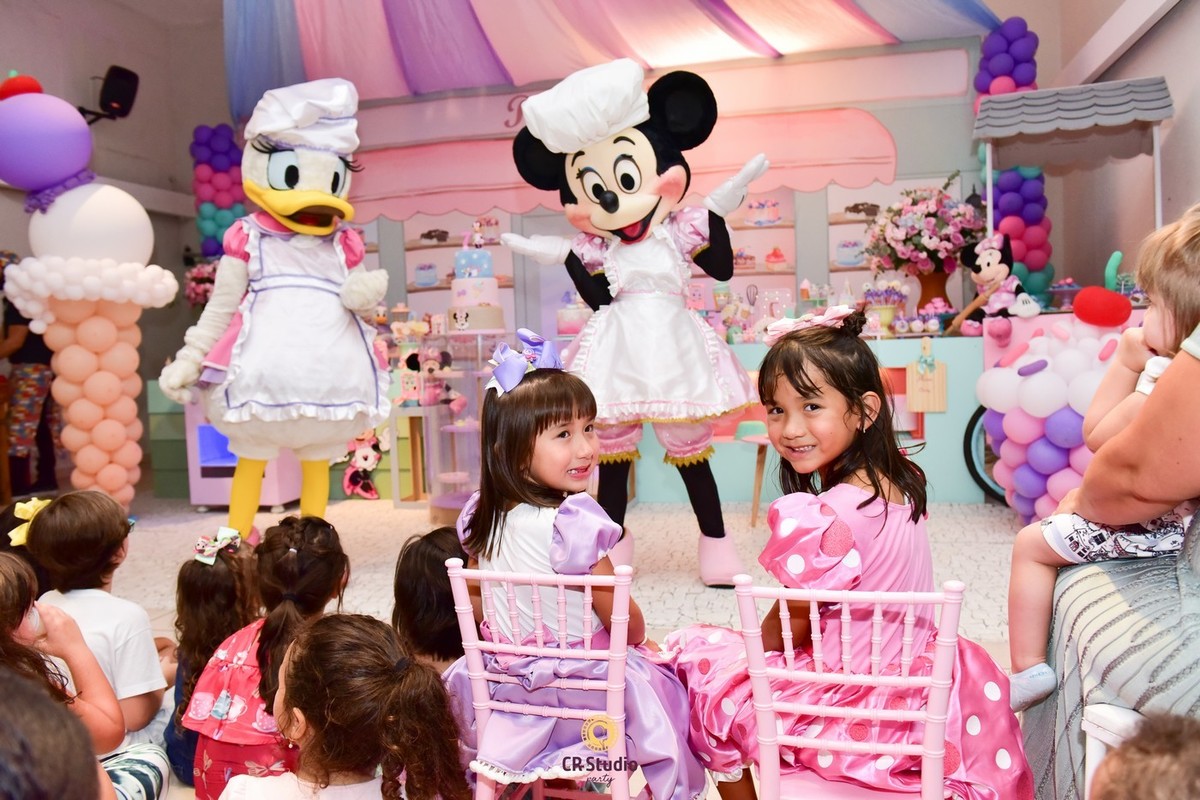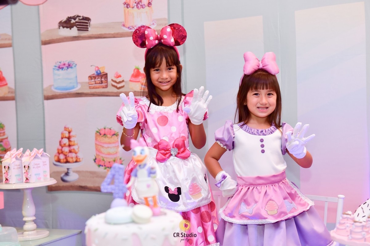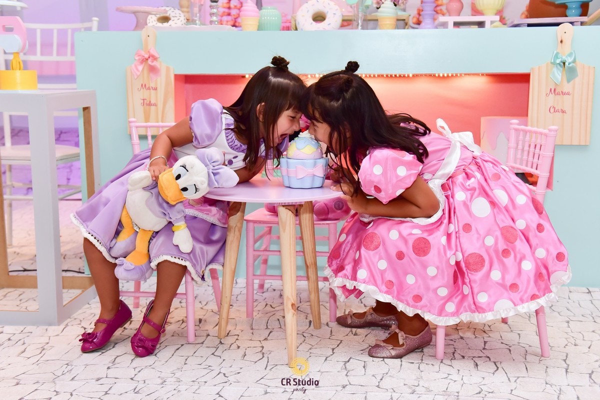 Uma festa cheio de delicias e uma linda decoração com a presença da Minnei e Margarida para comemorar o aniversário de 7 anos da Maria Júlia e Maria Clara.
