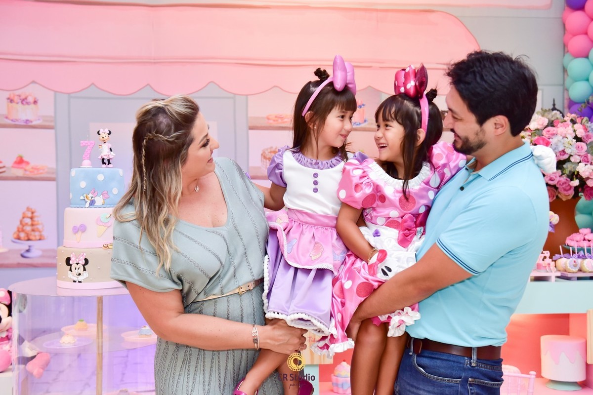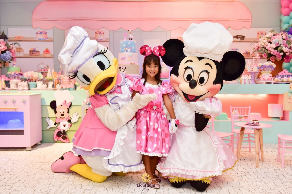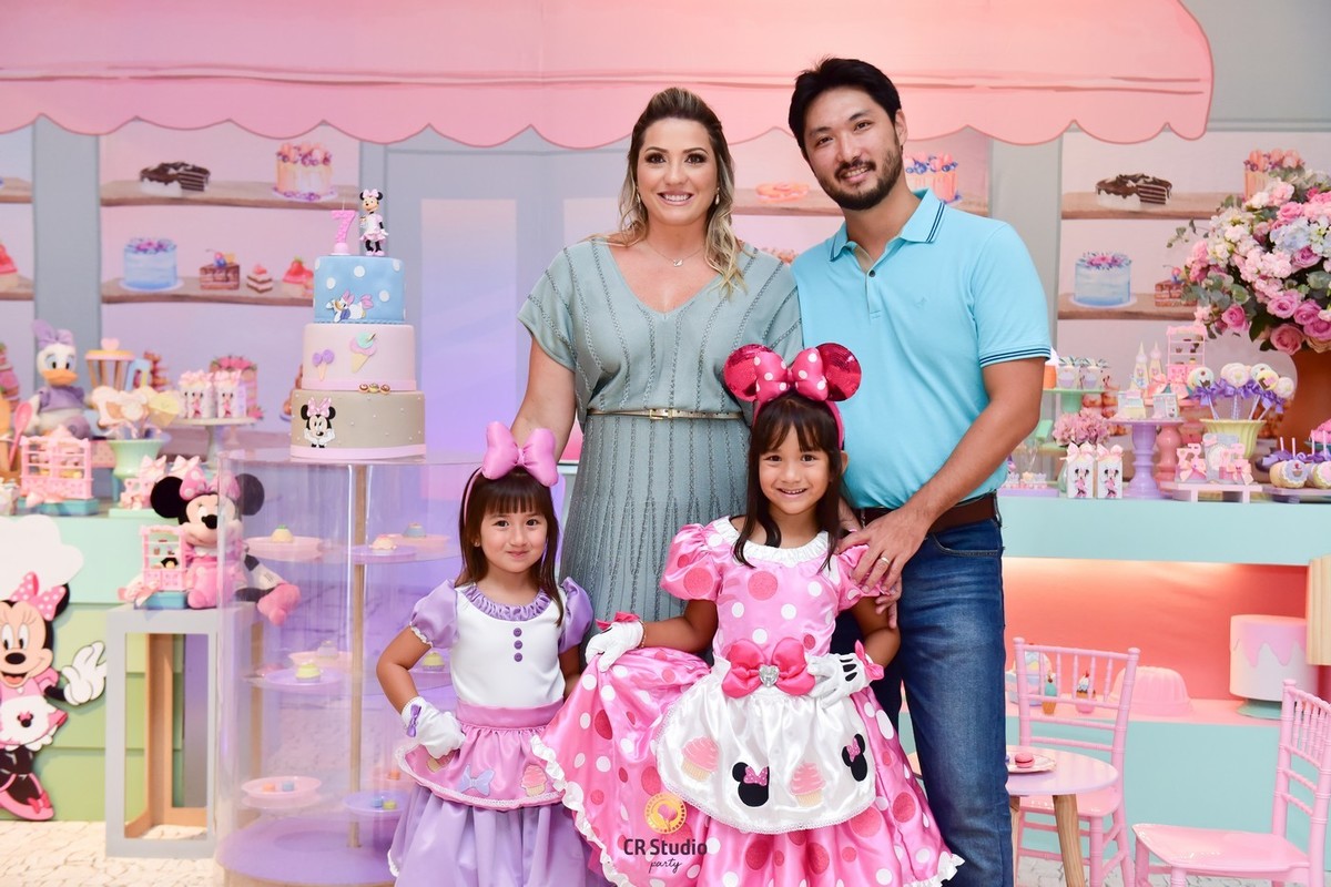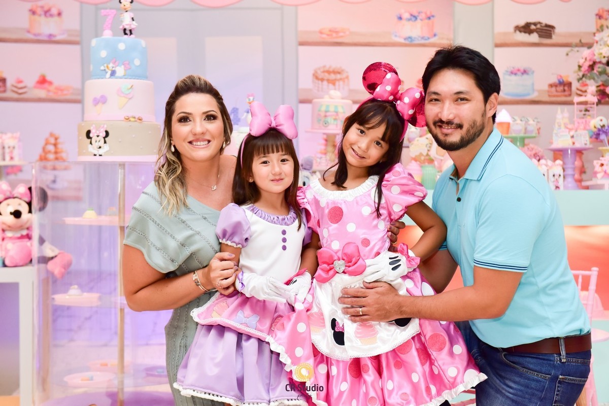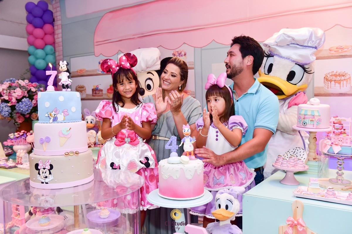 Uma festa cheio de delicias e uma linda decoração com a presença da Minnei e Margarida para comemorar o aniversário de 7 anos da Maria Júlia e Maria Clara.