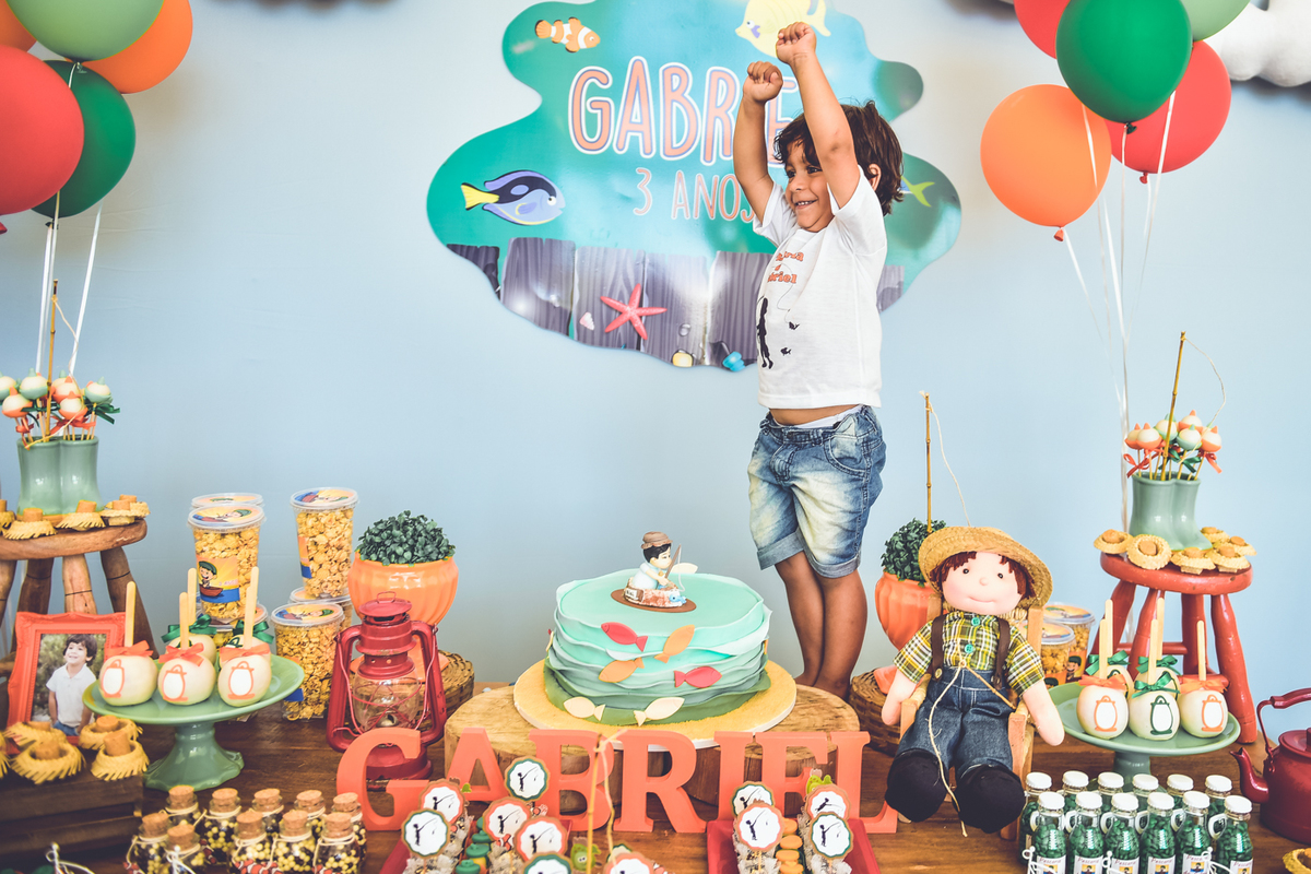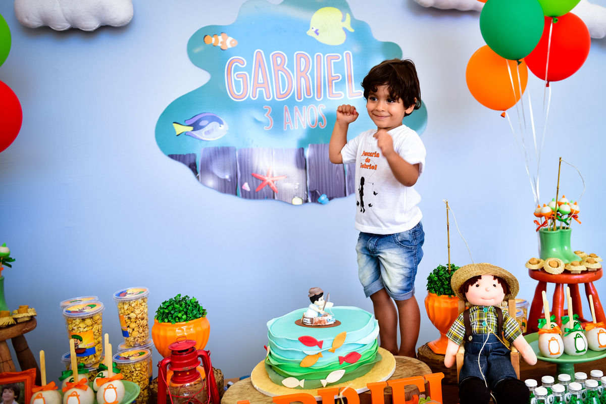 Linda festa com direito a pescaria para comemoração do aniversário de 3 anos Gabriel.