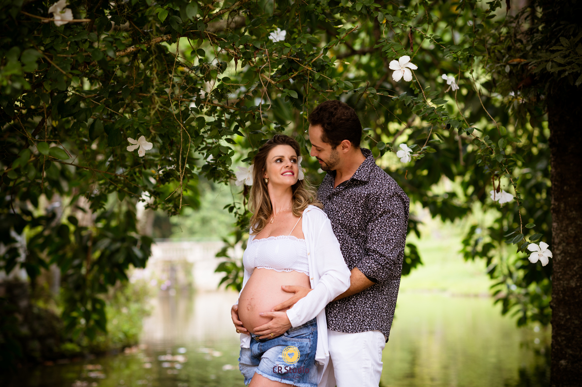Lindo ensaio para registrar a gestação do Benício com a mamãe Camila e o papai Caio.