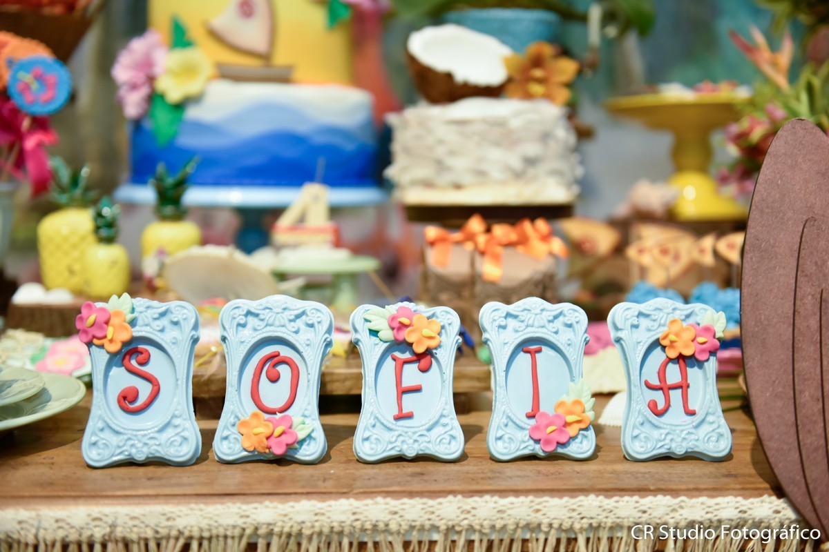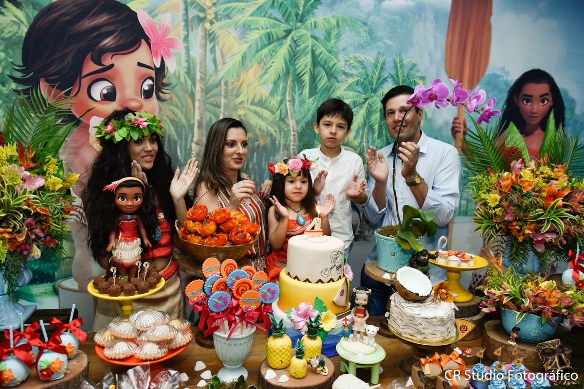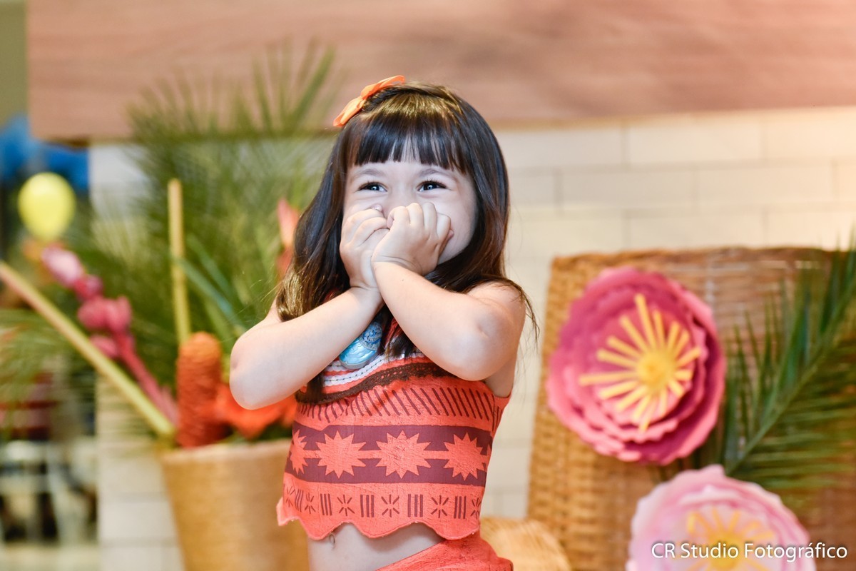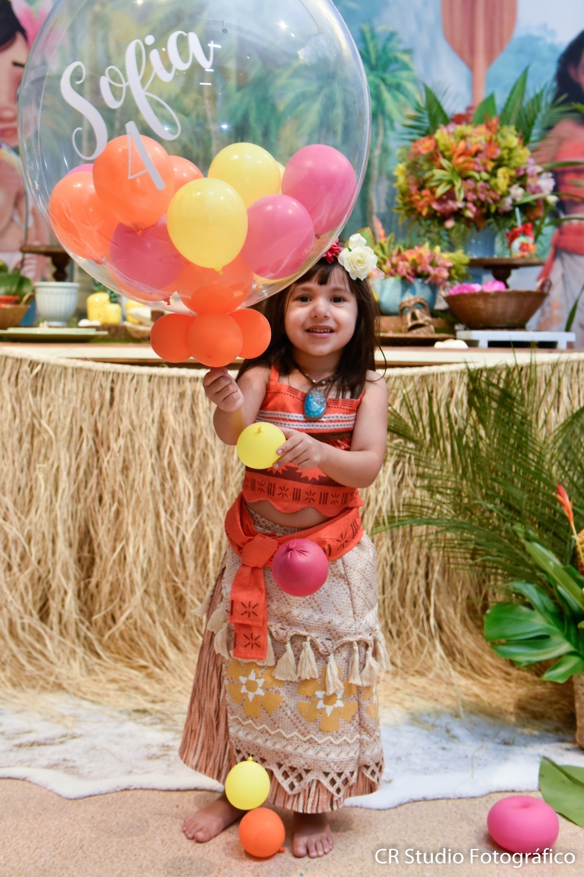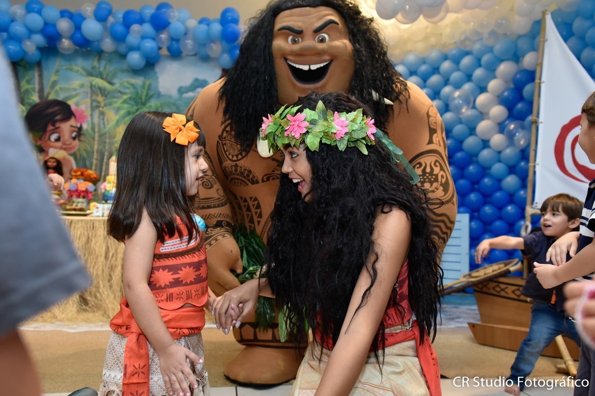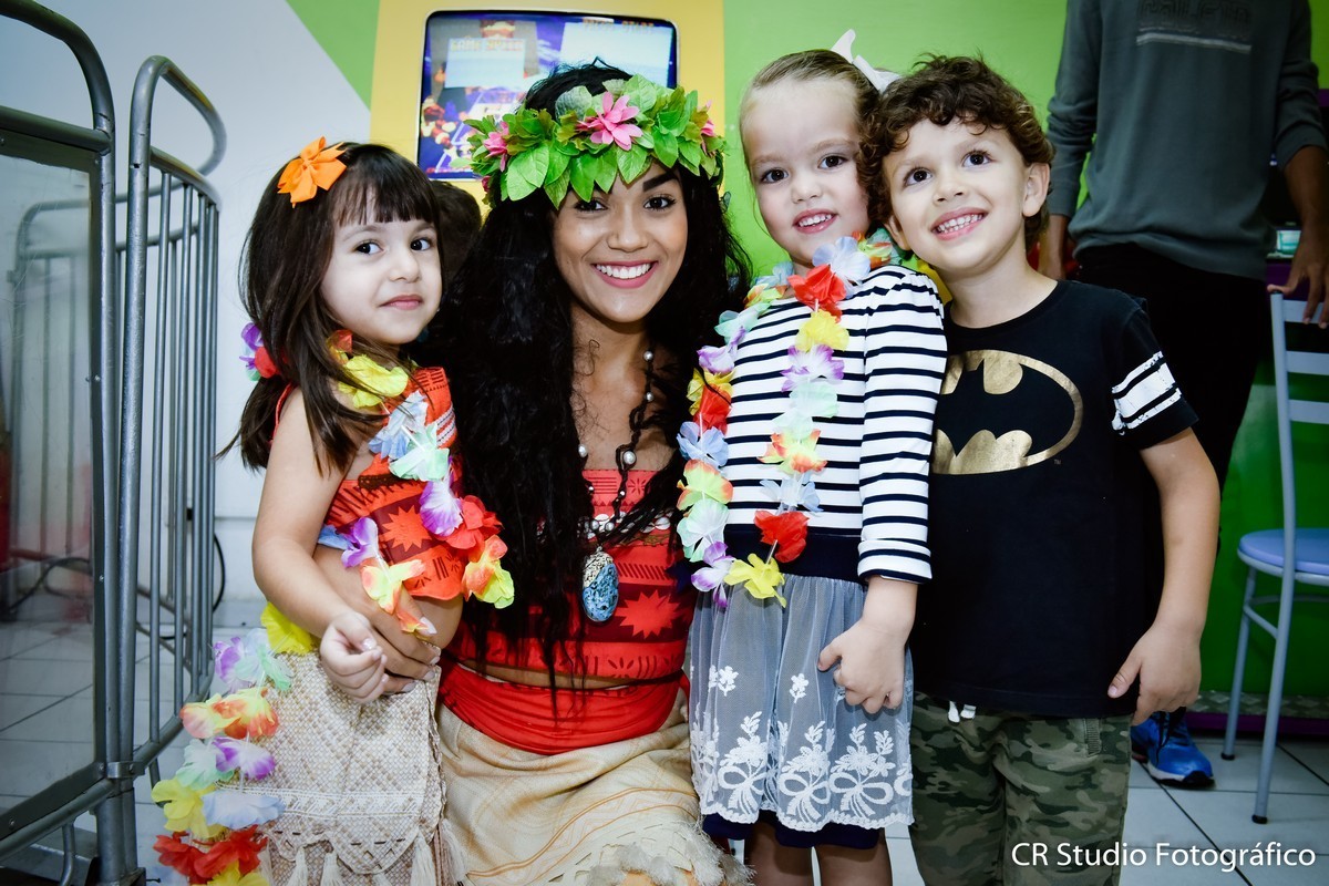 Sofia estava encantado com seu aniversário e aproveitou cada muito de sua festa e não desgrudada na sua amiga especial a Moana brincaram muitos juntas.